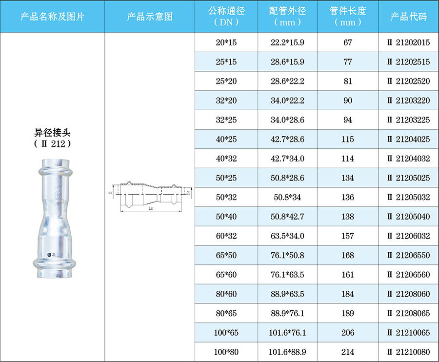 3、按照連接形式分類有焊接異徑接頭、內絲異徑接頭、外絲異徑接頭等。