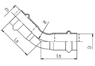 管道安裝中常用的一種連接用管件,連接兩根公稱通徑相同或者不同的管子,使管路做一定角度轉彎,公稱壓力為1-1.6Mpa。