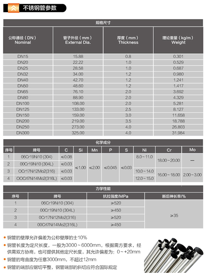 抗蝕:管材整體經(jīng)固溶處理,表面酸洗鈍化,經(jīng)久耐用。加保溫層或防蝕層抗蝕效果更佳。